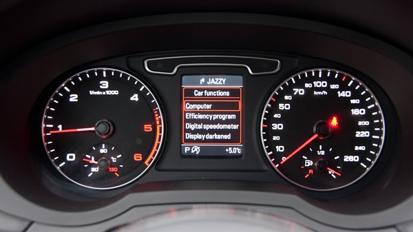 Ugyanúgy az ergonómia is remek. Bár az MMI tekerőjét a középkonzolon találjuk, de az elérhető alapfunkciói külön kezelőszerveket is kaptak, nem kell mindenáron a menüben turkálnunk minden apróságért. Bónuszként pedig ott vannak a kormány tekerő- és nyomógombjai és az óracsoport közepén pedig a színes kijelző. Így lényegében mindenki megtalálja a neki kézre eső megoldást. Egyetlen dolognál lóg ki a lóláb: a két középső szellőzőrostély akkora, hogy talán elegánsabb lett volna kétfelé osztani, mint mondjuk a nagyobb Tiguanban.