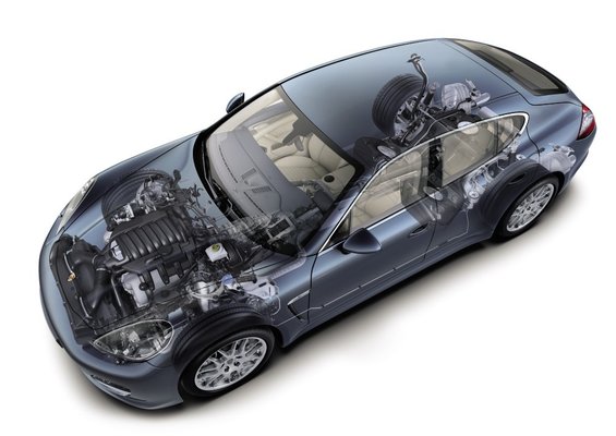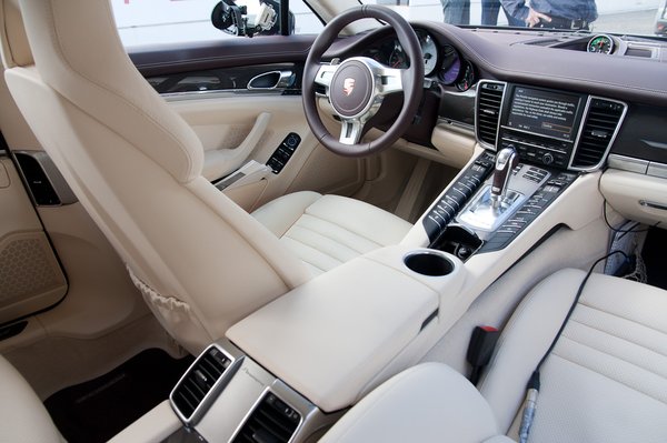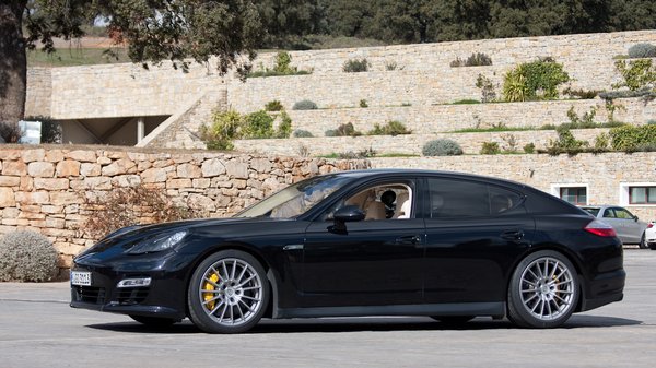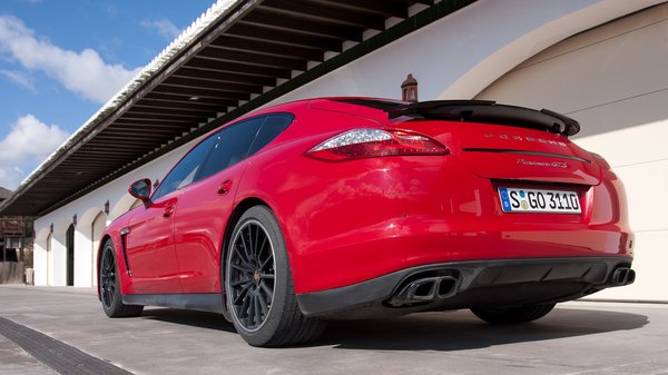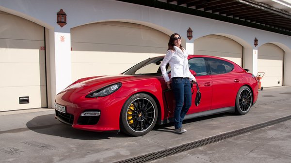 A GTS eleve légrugós, szabályozott lengéscsillapítós futóművet kap, de ez egy centivel alapból alacsonyabban ül, mint a normál S-nél. Ahogy a helyi porschés ember elmondta, a Sports Chrono csomag alaptartozék, és ennek nemcsak a műszerfal közepén lévő stopper a fontos része, hanem a rajtprogram is. A GTS hátsó szárnya egyébkén vicces. Nemcsak simán felnyílik, mint a 911-esé, hanem széltében is terjeszkedik, azaz a két fele oldalra csúszik cirka 15-15 centit, így a szárny nyitott állapotában vagy harminc centivel szélesebb, mint a hely, ahová becsukódik. A fékeket egyszerűen áttették a Panamera Turbóról, hogy biztos elég lesz, de akik szerint nem, vegyenek nyugodtan kerámia fékeket. Azon viszont meglepődtem, hogy hátul a nyomtávszélesítést szimplán öt milliméteres pogácsákkal oldották meg.