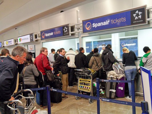 Végül egy utas magyarázza el neki franciául, hogy a Spanair csődbe ment. Biztos nem érte meg ezernyolcért árulni a háromszögszendvicset.