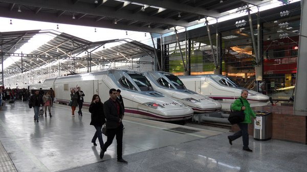 Az Atocha érdekes pályaudvar. A régi felét úgy kell elképzelni, mint a Keletit – ezt átépítették pálmaházzá, szabályozott páratartalommal. És építettek mellé egy hipermodern szárnyat, ahonnan az AVE nevű szupervonatok indulnak – ezek a vonatok gyakorlatilag a francia TGV-nek felelnek meg. Az az Alstom gyártja őket, amelynek a metrószerelvényei csakis a magyar műszaki előírásoknak nem tudnak megfelelni. T. arra számít, hogy akár 240-nel is megy majd a vonat. A kajáldák hét előtt ki sem nyitnak, várnia kell, de a pálmaház is sötét még, hisz errefelé majdnem kilenckor kel a nap. Úgy tűnik, az emberek még később.