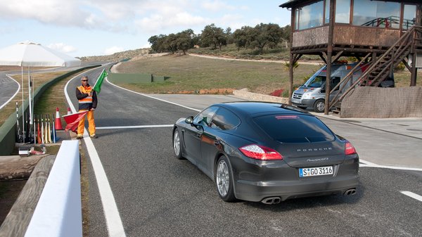 Persze baj nincs, később már a döntött kanyar táján észhez térek és lehiggadok. Eddig kussoltam, de most már eleresztek egy megjegyzést, hogy ez a GTS picivel gyorsabbnak tűnik a dízel Panameránál. Helyesel. Nem sokkal később eltépünk a boxutca bejárata mellett, tovább a célegyenes felé. Neki szabad. De itt már nincs gáz, tudom, mire számítsak.