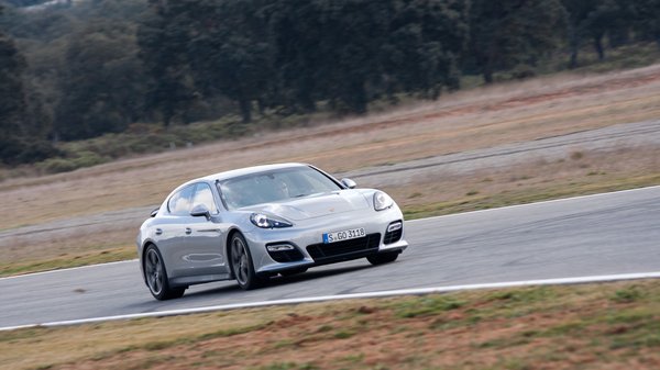 A váltófüles kocsival már rendben volt minden. Precíz váltások hétezernél, mindezt úgy, hogy egyetlenegyszer sem kell átfogni kanyarban. Pedig van itt szűk forduló is, ott, ahol a pályát levágták (nem teljes hosszában használtuk az Ascarit). Itt elég óvatosan mentem, míg rá nem jöttem, hogy van egy bekormányzási sebesség, ami fölött a Panamera GTS elkezd nagyon kanyarodni. Nem úgy, mintha csak a kormányzástól fordulna, hanem mintha arra a kis időre kidobna valaki egy kis horgonyt, és akörül kötélen perdülne a kocsi. És valóban, utánaolvasva kiderült: az elektronika egy kis ballábfékkel aládolgozik a vezetőnek: a hátsó ívbelső kereket megfékezi, ettől a differenciálmű kvázi aktív diffiként kezd el működni, azaz az ívkülső kerék elkezd sietni. Az autó meg fordul, mint az őrült. Zseniális.