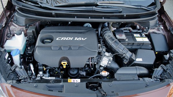 Hogy az új, változó geometriájú turbóval szerelt 1,6-os dízel (128 LE) vegyes fogyasztása 4 liter lenne, legalább olyan komoly forráskritikával kell illetni, mint egy elnöki kisdoktorit. Azt is lelkiismeretesen nullázgattam, de csak akkor sikerült 4 literes átlagot kapnom, amikor az autópályán 120-ról 90-re lassítottam, és úgy mentem még három kilométert. Na az volt a négy liter, de szerintem a hat sem volna szégyenteljes: egy-két literrel kevesebbet fogyaszt, mint a benzines, nagy kaland. Egyébként a benzinesnek sem tudom, milyen szabvány szerint mérték a gyári fogyasztását, mert nekik 5,7 jött ki, én pedig országúton, olyan vezetési stílus mellett, hogy többször ébredtem a saját horkolásomra, tudtam 6,2-re levinni. De az tényleg országút volt, nulla forgalommal, 80-90-nel. Ez végképp nem a motor hibája, hiszen ez a jó kis koreai egyértelműen az egyik legjobb szívómotor, ami manapság létezik. 9,9 másodperc alatt nem rossz a 0-100-as gyorsulás egy.... hány kilós autótól is? Sem a sajtótájékoztatón nem mondták, sem a nyomtatott sajtóanyagban nem szerepelt, az elektronikusban sem. Hiába kerestem a tesztautókhoz mellékelt laminált ismertetőn, a forgalmit ugyan lefotóztam, de arról is pont az maradt le. Szóval nem rossz ez egy nem tudjuk, hány kilós autótól.