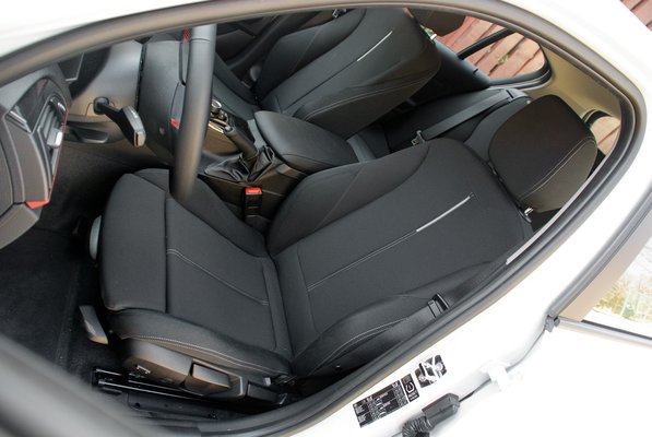 És az autó tényleg rugózik. Nem mondanám ringatózóan finomnak, de már nem is sprőd. Kisebbtől közepes méretig lényegében nem tűnnek fel az úthibák, a jellemzően budapesti bukkanók viszont átjönnek, de legalább már nem fájnak. Jó az ülés, tart, és ahhoz képest, hogy minimál BMW-ről van szó, elég nagy is. Hátul viszont már kijön a kemény tömés hátránya: ha a kontúrok nem követik a testet, az ülés már nem annyira kényelmes.