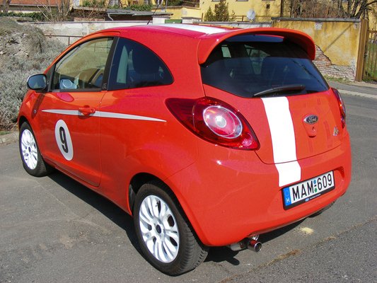 Pedig formáját tekintve a régi Ka mellett az új unalmas, modern tömegautó, elvesztette régi cukiságát. Nagyítóval sem lehet megtalálni benne az aranyos, egyedi baseballsapka formát, amiért annyira szerettem. De a feltűnést kedvelők szerencséjére a Grand Prix editionnel megtalálták az unalom ellenszerét: fehér versenycsík a motorháztetőtől a fenekéig, hátsó spoiler, fehér hűtőrácskeret és felnik, és ha már versenyzünk, rajtszámok mindkét oldalon.