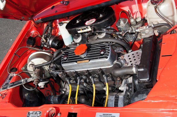 Mi van benne ma? Egy eredetileg 72 lóerős MG Metro motor, de itt két SU HS2-es karbival, könnyített lendkerékkel, növelt kompresszióval, nagyobb szelepekkel, megnyitott csatornákkal, 3:2:1-be leömlővel, nagy átmérőjű csövekből készült kipufogórendszerrel, elektronikus gyújtással, így inkább 80+ lóerősen. A leghosszabb Mini-diffi van a motor alatt (hiszen itt a váltó és a blokk egységet képez és közös olajkörön van), 2,9-es. Ma nagy turbódízeleknél találkozunk ilyen hosszú végáttételekkel, de ne feledjük, hogy ez az 1275 GT még az utolsó tízcollos kerekűek közül való, ezért nem árt nagyjából másféllel felszoroznunk a számot.