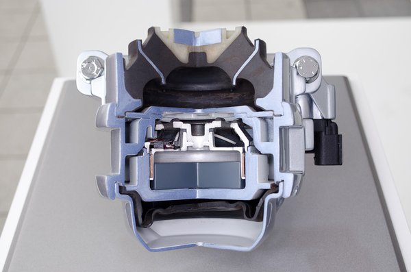 Viszont, hogy meglegyen a dráma, az Audi nem tűrheti, hogy az öncsonkítás plusz vibrációi észrevehetőek legyenek az utastérben is, és fejlesztett egy aktív motortartó bak-rendszert. Maga a bakfejlesztő csapat egyik mérnöke mutatja be a működését egy laptop és egy tablet segítségével, meg persze a preparált autóval, amiben külön, álló motorral próbálható ki az aktív bakok által keltett rezgés. Az alapelv ugye annyi, hogy ha a hanghullámokkal ellentétes fázisú hullámokat küldünk szembe, az eredmény csend lesz, így működött a Lexus zajkioltó rendszere, ami a fejtámlából sugározta az utastérből levett zajminta ellentétét. Stefan Vollmann mérnök nem ismeri a régi Lexus-rendszert, de elmagyarázza, hogy a nyolcról négy hengerre történő átállás során keletkező rezgéseket is úgy oltják ki az aktív motor- és váltótartó bakok, mintha hangszórók volnának.