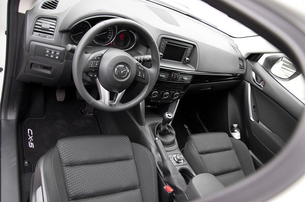 Lehet, hogy a CX-5 bő félarasznyival rövidebb a CX-7-esnél, de számottevően nem rövidebb a tengelytávja, nem kisebb a szélessége, ráadásul még magasabb is, az első üléseinek szivacsozása pedig vékonyabb. A végeredmény: a két kocsi utastere elöl és hátul nagyjából azonos méretű. Tehát: a CX-5 egy tágas kompakt SUV, ráadásul a csomagtartója is fél köbméteres. Egy új trükk is itt jelent meg: a csomagtartóból egy karral a Karakuri-rendszer szerint síkba dönthető ülések már nem csak két, hanem három részletben, három karral működnek így. Értsd: a középsőt külön is le lehet billenteni, például, amikor a seprű hátán csücsülő, bibircsókos nagynénit akarjuk extra sebességgel betuszkolni.