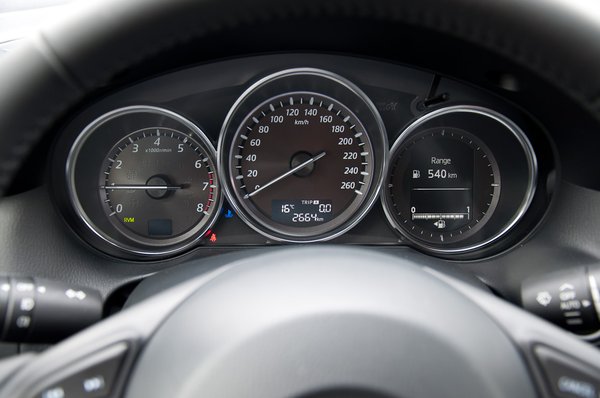 A 2,2-es SkyActiv-D motor műfajának az egyik legjobbja, ha nem egyenesen A Legjobbja. Csak alapjáraton és erős gyorsításnál hallani rajta, hogy dízel, akkor is alig. Különben még a szakemberi fület is hegyezni kell, mert igazából a fordulatszámmérő sem segít a beazonosításban: 5500-nál kezdődik rajta a piros osztás.