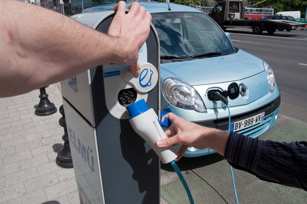 A rövid próbaúton, amelyen az említett, zebrán átkelő néni igazából nem került veszélybe, nem bírtuk megállni, hogy meg ne látogassuk a villanyautósok budapesti zarándokhelyét, a Váci úti, Elmű-féle konnektort, ahol elvileg még ma is ingyen lehet villanyautót tankolni. Nem is csodálkoztam, hogy senkit nem kellett megkérni, adja már át a helyét a fiatalabbaknak, simán begurultunk, és nagy lendülettel rántottuk elő a Kangoo feltűzhető ormányát, hogy a próba kedvéért csepegtessünk pár coulombot a cellákba.
