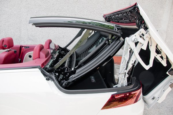Mindent tudunk: a felületet, amin haladunk, a sebességet, amellyel tesszük ezt, az autó folyamatosan tájékoztat minket, padkára parkoláskor még talán reccsen is egyet, de csak halkan, ne zavarjon. Csukott tető esetén csak annyit változik a helyzet, hogy néha megrezdül fejünk felett az üvegkupola, de ez jó, mert tudjuk, hogy még van. Ha mindehhez hozzávesszük a tudatot, ami okkal-ok nélkül is folyamatosan a fejünkben motoszkál, mióta megvizsgáltuk a kétrészes tető mozgató mechanizmusát, kilométernyi tekergő vezetékét, szervómotorjait, a csomagtér kétzsanéros megoldását (tető összerakáskor hátrafelé nyílik, amúgy simán fel)... Nos, maradjunk annyiban, hogy nem teljes a bizalom. A tetőt inkább nem is mozgattam sokszor, jobb a békesség. Pedig Gömörben hétágra sütött a Nap.