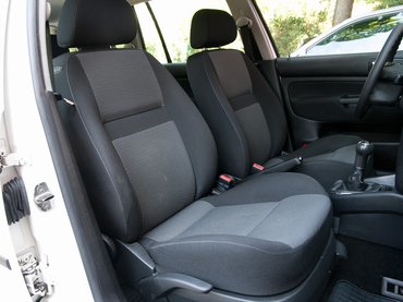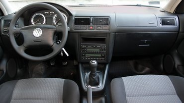 Az rögtön látszik az autón, hogy nem új, de szerették és vigyáztak rá. Elején, főleg a motorházfedél elülső részén kőfelverődések, ezek az M7-es meghosszabbításának állítanak emléket. A bal első sárvédő mintha kicsit más árnyalatú lenne, ez cserélve volt – amúgy egy teljesen semmilyen, fehér Golf kombi. A vicc az, hogy belül is, annyi tűnik fel, hogy porlad váltószoknya, a kiszakadt üléshuzat a vezetőnél és a csomagtérrolórossz. Alaposabb kutakodással még feltűnik pár apróság: védő ugyan volt a kormányon, de a hüvelykujjnál már nem védett, itt egy kopásnyom. Ez persze semmi az 567 ezer városi kilométert futott Astráéhoz képest, amelynek rendes vályút mart a kormányába a vezető keze? Aztán nézzük csak, a műanyag pedálok kopottak még valamennyire, ja, és az ajtókon, meg a váltó körül a műanyagról lekopott és ragacsossá vált a kellemestapintás-bevonat. Azt hiszem, egy bontóból igen szerény beruházással kétszázezret futottá lehetne tenni a Golfot, mert az alapos tisztítás után a kárpitokon és más műanyagokon az égvilágon semmi nem látszik. Szóval, tessék vigyázni a Golf IV-esekkel!