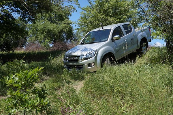 Az aszfaltos rész az átkelés után Szokolya dombjain ért véget, itt végre kipróbálhattuk, mit tud az automata pickup. Persze a szórakozás előtt még egy kis agytágítást kaptunk, amiből például megtudhattuk, hogy az új D-Max bemutatásának napján déltől estig 500 darabot értékesítettek. Ennyi volt a célkitűzés a Porsche Hungáriánál 2011 végig Amarokból, illetve majdnem ennyit adtak el Hiluxból 2010-ben Magyarországon. Ezután tovább borzolták a kedélyeket, amikor az előadásban elhangozott, hogy az első hónapban napi 1000 körüli mennyiséget adtak el a járműből. Itt több velünk tartó márkakereskedőt fel kellett locsolni, hiszen nekik legfeljebb nedves álmaikban fordul elő ekkora eladási szám.