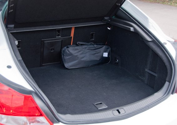 Panaszra persze semmi ok, gondoltam, miután beültem egy kicsit a hátsó ülésre. Az ötajtós Insignia formája annyira domináns, olyan szigorúan ragaszkodtak a névtelen formatervezők a karakteres sziluetthez, hogy az első próba után, utasként már egy egyszerű bécsi kirándulást is kétszer meggondolnék. Fejtámlára nincs is szükség, hiszen minden különösebb nyújtózkodás nélkül eléri a fejem a tető ívét, így gyakorlatilag mozdulatlan élő rakományként utazhatok beékelődve. Ha előrébb csúszom, eléri a lábam az első ülés támláját, ha ilyenkor kicsit görnyedek, még a szintén nagyon szűkre vágott oldalablakon is kilátok. De csak akkor. Így ez egy büntető Ryanair-járaton való utazással is felér.