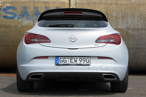 A külső forma, a GTC formája nagyon eltalált. Oldalról mint egy lándzsahegy, a motortér tető ívét minimális töréssel követi a szélvédő és a tetőív. Az ablakok csak egy vékony csík, ez is erősíti a dinamizmust, és az erőt hangsúlyozza. Hátulról mint egy szteroidokon nevelkedett százas sprinter, dagadnak a kerékjárati ívek és a két kipufogó kivezetés nem kamu: a Remus-szal közösen fejlesztett, 70 mm csőátmérőjű, mindössze két dobos rendszer kivezetései. Persze az Opel-bumerángformák sem maradhatnak el, ott van az első alsó kamu légbeömlő mellett, ilyen az alakja a nappali menetfénynek, a hátsó fénynek, a kipufogó ívének.