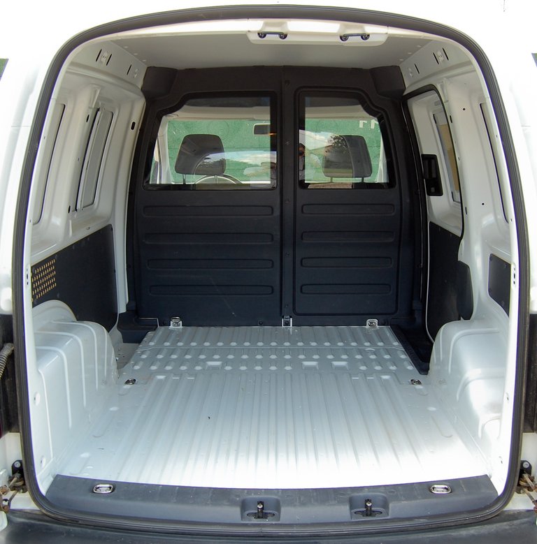 A kicsit legömbölyített forma oltárán elveszik pár centi, például a hátsó raktérajtó teljes szélessége 1190 mm, de felül ez összeszűkül 1010-re. Az oldalajtó 75 cm szélesre nyílik, illetve ennyire húzható el. Mit gondolnak, mennyi a Berlingóé? Talált: 74 cm. Egyébként az adatokat lemértem, mert a gyári prospektus csak köbméterekkel dobálózik, ami nem túl informatív adat, ha be akarunk rakni egy hűtőszekrényt és egy gáztűzhelyt. A 4motion Caddy hasznos teherbírása 650 kg körül alakul, felszereltségtől függően, ez is jellemző a kategóriára. A raktér szigetelésével, vagy kárpitozásával nem bajlódtak – alapban üres, mint a kisvállalkozók zsebe. A padlón van pár csomagrögzítő szem, alapban ennyi jár.