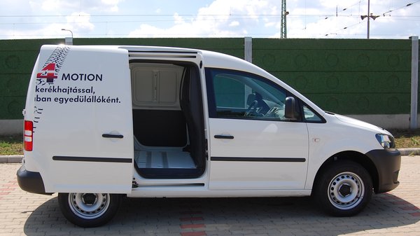 Ahol a Caddy nagyot dob, az a négykerékhajtás. Ezt nem kínálja ebben a kategóriában senki, és a semmi és a valami között nagy a különbség, noha a Caddy 4motion nem terepjáró. Hasmagassága 2 cm-rel nagyobb, mint az elsőkerekes testvéré, az elektronikusan vezérelt Haldex kuplung kapcsolja a merev hidas hátsó hajtást az alapnak tekinthető elsőhöz. Nyilván csúszós úton, vagy kisebb sárban homokban nagy segítség, de egyenetlen talajon nagyon hamar leátlózik, hiába a négy kerékre ható kipörgésgátló, semmilyen mechanikus difizár nincs, ezt pedig nem lehet elektronikával pótolni.