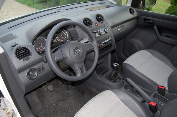 Ez a dobozos azonban csak kétszemélyes, ami egy háromszemélyesnek is rendelhető dobozos Berlingóval szemben valódi hátrány. Cserében viszont a két személy elöl kényelemben utazik a jó minőségű, kényelmes üléseken, nem egy dupla padon görnyed. Az utastér zajszigetelése is személyautós, kellemes utazni és vezetni. Persze a műanyagokon érződik, hogy nem egy Passat, azonban tisztítása könnyű, ez pedig fontos egy kis rakodás, egy kis koszos meló után. Egyszerű anyagok vesznek körül, de nincs az az érzésünk, hogy a belteret összelapátolták.