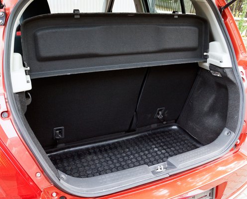 Bár a Swiftet kisautóként árulták, egy dolgot azért hamar leszűr az ember. A komolyabb kiskocsik, mint Fabia, Polo, Corsa picit tágasabbbak, de ezzel még el lehet lenni, hátul egy átlagember elfér. Az igazi hiba a csomagtartó hiánya (203 l), illetve az, hogy az üreg rövid és mély, kis nyílással, tehát aki első autónak venné, az erős kompromisszumot köt. Igaz, nem is került annyiba, mint az említettek. A forma miatt furcsa lehet, főleg a magasabbaknak, hogy az út fölé lógatott közlekedési lámpákan nehezen látják hosszan előrenyúló tető miatt, de ez a formából eredő sajátosság.