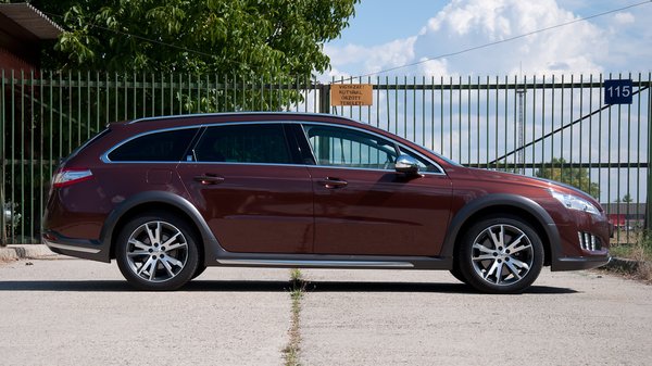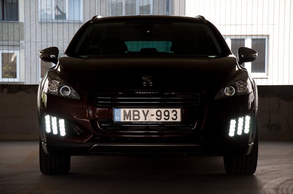 Hátööö...ne nézzenek csodálkozva egymásra, igen, ez egy 508 SW, azaz kombi, kicsit másképp. Két marék csillámpor a csillogásnak, ledsorok tömött sora a vakoknak, némi krómdísz a dalos lelkű muzsikusoknak, sárvédőív-szélesítések a férfiasság jegyében és 18,4 centiméterre növelt hasmagasság nem tudni, miért.