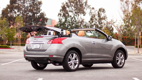 Látványos méretű, 235/55R20-as gumik vannak alatta (a vicc, hogy a CC bálna teste alatt még ez is kicsinek tűnik), ezeknek, meg az állandó öszkerékhajtásnak köszönhetően a kocsi gumicsikorgatás nélkül 7,5 másodperc alatt van százon. Nagy száguldozást azért nem lehet csapni, a végsebességét 185 km/ órában korlátozták. A fejvesztett rohangálás egyébként sem a Murano CC-nek való, a kanyarvadászat irtózatosan nincs kedvére. Két tonna feletti önsúlya, a kabriósítás miatt nem éppen betonmerev kasztnija nem teszi ideális szerpentingyilkossá. A bódé tekeredési hajlamát némiképp enyhíti, ha felhúzzuk a tetőt, de nyitott állapotában erőteljesen beremeg az útegyenetlenségeken. Mindez viszont mit sem számít, ha csak krúzolgat vele az ember. Különben is, a felhúzott tető bár elég fejteret hagy, és kellemesen csendesé is teszi az utasteret, a két aprócska ablakcsík ellenére szinte semmit sem hagy látni a mögöttes forgalomból.