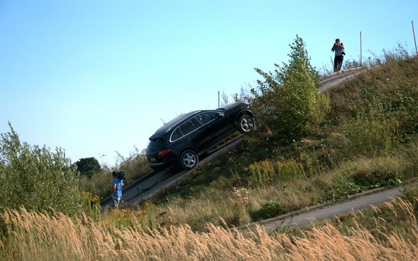 A terepjárásra kár vesztegetni a szót, hiszen a leghajmeresztőbb akadály sem volt több, mint egy bazalttömbökből kirakott negyvenfokos emelkedő. Recsegtek-ropogtak az autók, dolgozott az összkerékhajtás és a difizárak, de valójában egy Dacia Logan is elboldogult volna ott, ahol a 4-500 lóerős SUV-ok. A Rettenetes Gázló harminc centis vizét is kibírták. Nem tudjuk, hogy valójában előszériás autók voltak-e, vagy csak szimplán az amerikai piac igénytelensége teszi, de egyik Cayenne-beltér sem tett ránk mély, minőségi benyomást.