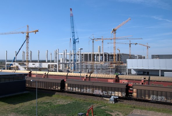 Megfigyelhettük, hogy a magasan képzett munkások hogyan öntik a betont, emitt egy dózer tolja a földet, amott Wolfgang éppen lyukat mar a betonba és lám: egy harmincméteres betonpillért hoz egy kamion, azannya! A gyárra vonatkozó egyéb infót egy sajtótájékoztatón kaptuk meg. Külön büszkék voltak az integrált munkahelyekre és munkacsoportokra, ez magyarul annyit jelent, hogy 5-10 ember dolgozik egy-egy részfeladaton és nem külön boxokban, hanem egy teremben ülnek. Nem voltunk rosszindulatúak, hallgattunk, de ez azért nem egy nagy világújdonság.