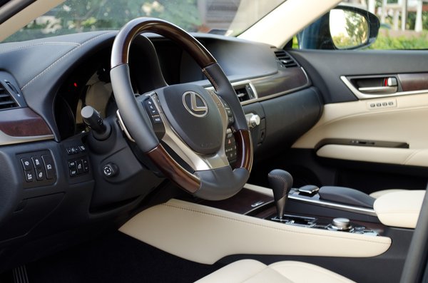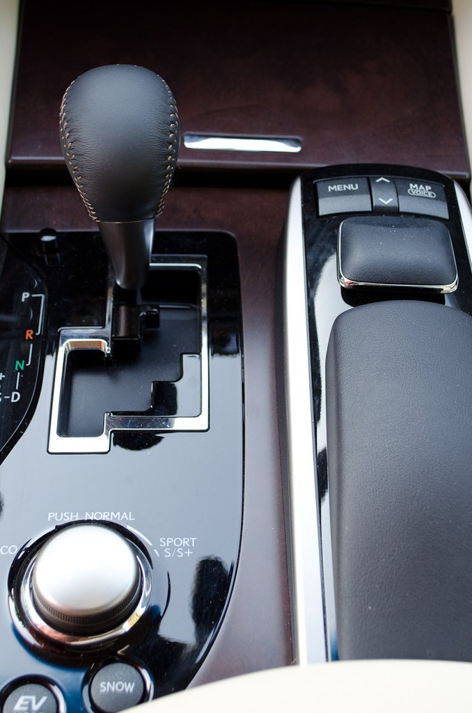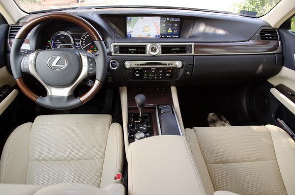 A beltér ugyanolyan minőségi és jól összerakott, mint volt, bár a középkonzol sokat változott. Az előző GS-ben egy hagyományosabb japán álló téglalap mentén rendezték a dolgokat, most egészen vaskos, valódi alumínium vízszintező uralja a képen, a közepén az analóg Lexus-órával. Hangsúlyozottan sok az alumínium, mármint a valódi alumínium, de nem a csillogósabb fajtából, hanem a kicsit sötétebb, matt felületű. A fabetétek kicsit olyanok, mint az 5-6 évvel ezelőtti koreai luxusautókban: tökéletesek, amit persze a koraiak ezt úgy értek el, hogy műanyagból gyártották, a japánok ellenben addig kezelik a fát, míg olyan szép nem lesz, mint a műanyag.