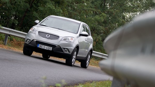 Sőt, tovább mennék, a Korandónak kimondottan barátságos pofája van, inkább érdeklődő, mint szörnyülködő reakciókat vált ki. Újnak mondjuk csak nálunk új, 2010 óta van gyártásban, Európában is bő egy éve árulják már. Sőt, a tanulmányautót először 2008-ban mutatták be a Párizsi Autószalonon, és nagyjából az akkori ízlésvilágot is képviseli. Kár, hogy ennyire elhúzódott a bevezetése, a Dacia Duster és a Kia Sportage előtt sokkal jobb esélyekkel indult volna.