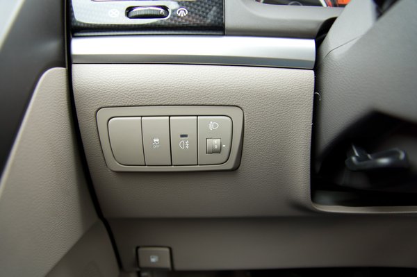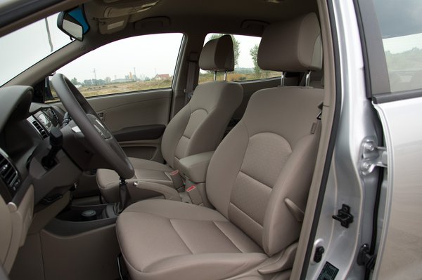 A bajok odabent kezdődnek. Ha a külső dizájn az élvonalhoz képest öt évvel van lemaradva, belül saccra inkább tíz évet kéne behozni a koreaiaknak. Nem is a formákkal van baj, sok túlburjánzott műszerfalnál kellemesebb látvány egy ilyen egyszerű alakzat. Hanem az ízléstelenség határán táncoló szín- és anyagválasztás. A karbonminta mint díszítőelem sajnos kevésbé szerencsés az orrunk előtt, mint a tavalyi, simán csak négyzetes textúrás műanyag. Az üléskárpit apró kagylócskás mintájáról pedig önkéntelenül nagyanyám tapétája jutott eszembe, és a drappos színvilág is valahogy egy tónussal odébb van, mint amit elegánsnak érzünk. De ez végül is ízlés kérdése, akinek nem tetszik, választhat szürke belsőt.