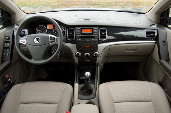 Miután befészkelődtünk az ülésbe, első harapásra meglepően otthonos ízvilággal találkozunk a Korandóban. Távol-keleti autóhoz képest kellemes csalódás például, hogy a kormányt eléggé ki lehet húzni, a magasságát is Formula 1-es pilótától kosárlabdásig bármilyen alkathoz hozzá lehet igazítani. Jó magasan ülünk benne, nem akar sportoskodni, régi vágású SUV-ként a jó kilátásra vágyókra utazik. Ma már szokatlan, hogy hátrafelé is ki lehet látni az autóból, jó találkozni ilyen feledésbe merülő erényekkel.