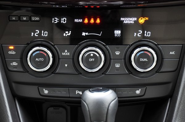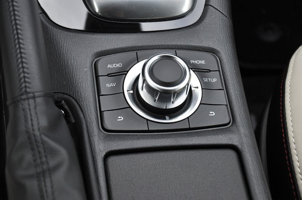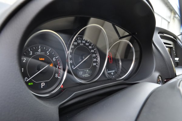 És folytatódik a zavar a térben. Az ajtók burkolatán levő behúzón hasonló ívű és ugyanolyan matt krómozású a műanyag, mint maga a kilincs, de az ötlet elakad, nem folytatódik sehol. A nyomógombok pedig – ahány, annyiféle. A szögletes, régi ablakemelő kapcsolók egy stílust képviselnek, a szellőzőrendszeréi egy másikat, a kormányon pedig harmadik féle nyomkodnivalót találunk, de legalább a korábbi, négyirányú kapcsolót elvetette végre a Mazda.