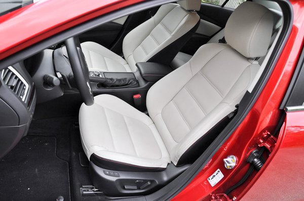 Nem, a belső tér kialakítása korántsem világbajnoki, nem is húzza fel a 6-ost a luxuskocsik irányába – amerre pedig tartani szeretne. Ennél egy Toyota koherensebb, egy Honda is homogénebb, ha pedig a belső tervező alaposan kielemezte volna, mitől annyira Volvo egy Volvo-bél, Audi egy Audi-utastér, Opel egy Opel-kabin, rájöhetett volna: végigmegy bennük egy közös gondolat. Szörnyű, amit mondok, de a Golf 7-es utastere sokkal stílusosabb és átgondoltabb, ez az, amikor az unalmas átlagkompakt leiskolázza a szuper-Mazdát. A helyzeten egyébként sokat ront a vajfehér bőrülés is, pedig alapvetően szeretem a világos utastereket. De azokkal van ilyen króm, olyan króm, metálbordó, vajfehér – túl sok a szín, a textúra. Nem lehet igaz, hogy a legfontosabb célközönség, az amerikai ilyen vegyes felvágottra vágyik. Jobb, ha minden fekete, akkor legalább nettó komor a belső, az is valami.