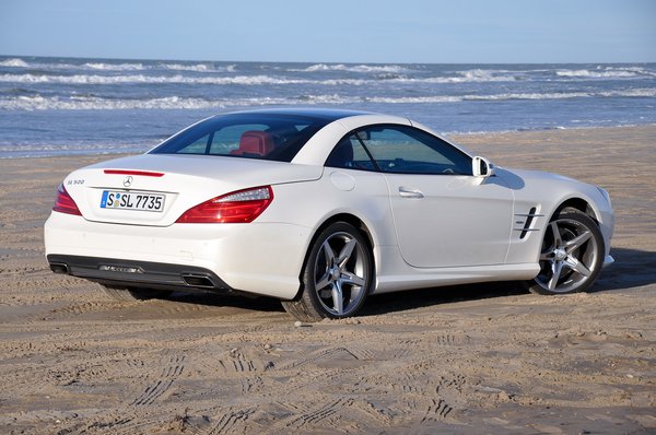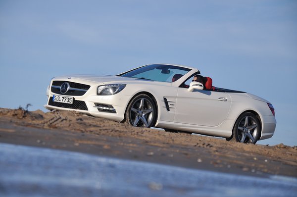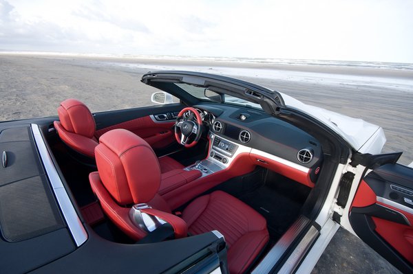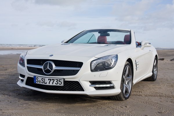 A motorból így jött ki a 435 lóerő, ami nem kevés, de az SL-ben egyelőre az alsó-széle-közepe, az SL 350 fölött. Mert lesz SL 63 AMG is (5,5 l, 537 LE, 800 Nm), ami egy Performance Package-dzsel megtoldva már 564 ló és 900 Nm. Továbbá egy még tréfásabb SL 65 AMG (6 l, 630 LE, 1000 Nm), gondolom, ez már a gumi- és kőolajbáróknak.
