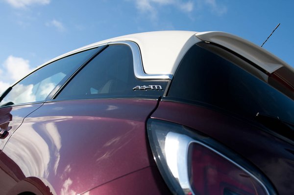 Az Adam Jam a vagány, az Adam Glam az elegáns, az Adam Slam pedig a sportos széria. A sima Adam? Na, azt veszik a nyugdíjasok. És csak itt szakad át a gát, ezen a ponton szakad az ember nyakába az egész látványtuning-Niagara. Kétszínű fényezés, méghozzá a ma ismert legelegánsabb módon megoldva, a tető és a kaszni színe ugyanis sehol nem találkozik, mert köztük egy alu-díszcsík és egy kis fekete rész képez választóvonalat. Úgy hívják: lebegni látszik a tető, és nahát, tényleg.