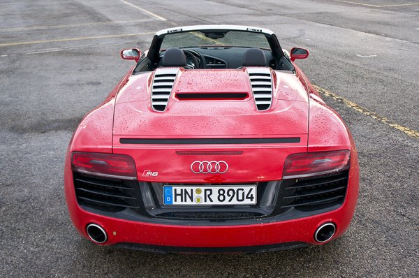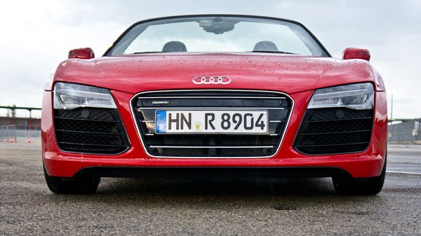 A futóműgeometrián szintén változtattak, emellett keményebb szilenteket használnak az elöl-hátul kettős keresztlengőkaros futóműben. Ezekről a változásokról Jürgen Wackerrel, a Quattro GmbH Audi R8-projektvezetőjével beszélgettem, miután meglepődve kiszálltam a ropogva hűlő Spyderből. Kérdésemre, hogy tervezik-e az R8 szívómotorjainak leváltását alacsonyabb károsanyag-kibocsátású, feltöltött motorokkal csak ennyit válaszolt: nem, sportautóba szívómotor való.