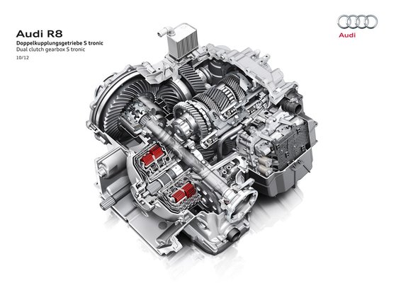 A lényeg azonban az, hogy az R8 megkapta a Porsche duplakuplungos (PDK-) váltójának típusra szabott változatát. A hétsebességes szerkezet nagyon kompakt, alig 60 centiméter hosszú és mindent tud, amiért már a 911-esnél is rajongtunk: villámgyors, bírja a halmozott visszaváltást (ha kell önmaga is zokszó nélkül visszagangol 7-ből másodikba), mérföldekkel jobb választás, mint a szép, nyitott kulisszás, hatsebességes kéziváltó. Margóra megemlítették, hogy 0,9 literrel csökkent az átlagfogyasztás az elődhöz képest, nem is tudom, kit érdekel ez az R8 vásárlói közül.