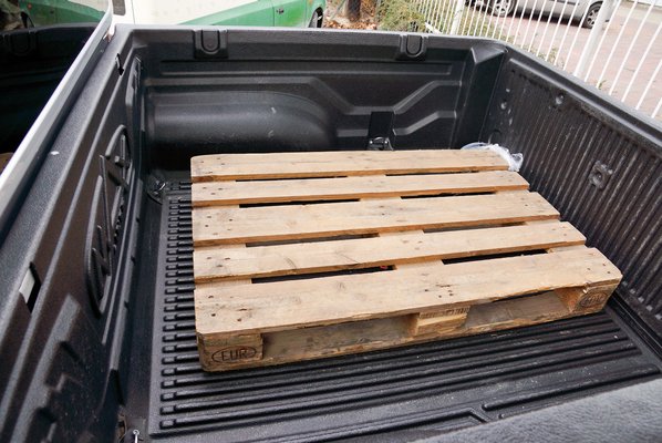 Valahogy mindig az Amarok érkezésekor akad raklapos szálítani valóm, Most is a véletlen úgy hozta, hogy a pickup éppen a Totalcar áruház költözésével esett egybe, így célszerűen azzal szállítottam át a korábbi raktárból az újba az árukészletet. Amikor megérkeztem, a targoncás ember aggódva rakta fel a raklapot, pedig bőven felfért és a platóbélés jóvoltából nyoma se maradt.