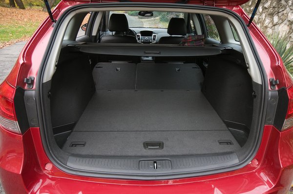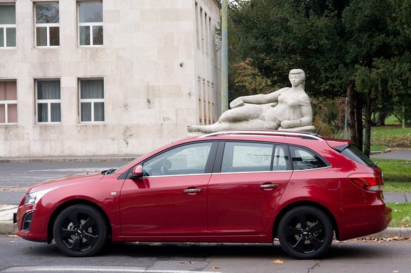 A Cruze-t szedánként és ötajtósként már ismerjük, a kombi kétségkívül praktikusabb ezeknél. Hogy mekkora? Látszatra nem nagy, valamiért a kombiknál szégyellősen lecsapkodják a hasábforma sarkait, mintha ciki lenne, hogy rettentő sok cucc befér. A Cruze szinte hajszálra akkora, mint az Astra kombi, a tengelytáv is megegyezik, mégis, amikor egymás mellett állnak, az Astra feneke nagyobbnak tűnik. Pedig nem: papíron még a csomagtartó mérete is egyezik, azaz pont fél köbméter. Talán ez azért lehet, mert ugyanarra a padlólemezre épülnek.