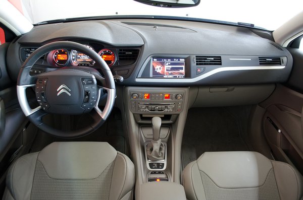 A rugózáson túl sokat ad a kényelemhez, hogy nagyon jók az ülései. Fotelszerűek, de határozott tömésűek. Valahol félúton a kemény és a puha között, nem beszélve arról, hogy a csúcsülésekben a támla felső része külön is állítható, és van hátmasszázs funkció. A beltér nem igazán különleges, egyszerűen csak nagyon jó, és ez szerintem előrelépés a Citroënnél. Komolyan: németesen összerakott belső, minőségi anyagokkal, ráadásul az összhatás annak ellenére sem unalmas, hogy gyakorlatilag csak szürkét és feketét tartalmaz. Nem németes, nem japános, de franciásnak se mondanám, amennyiben a francia beltér sterilen rideg, mint egy Renault-é, vagy faltól falig plüss, mint a Peugeot-k. Azt hiszem, ezt a visszafogott, de nagyon minőségi beltér-stílust, ami a C5-ön kívül a DS3-ast is jellemzi, hívjuk majd néhány év múlva citroënesnek.
