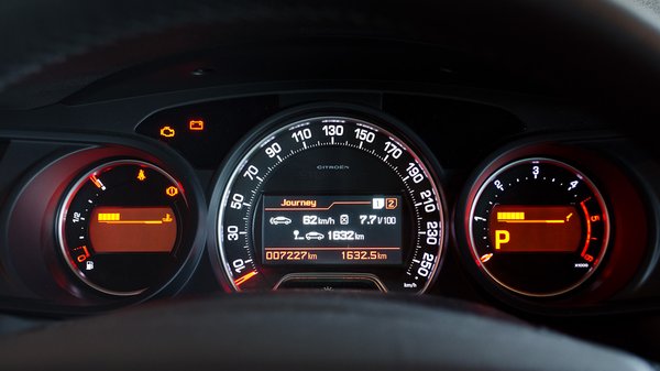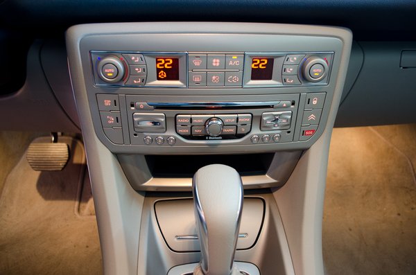 Az elektronikai szórakoztató rendszer vezérlése elég idióta. Mindenhez külön gombok, de nehezen olvasható jelzésekkel, és én nehezen is érem el a gombokat, ha kényelmesen ülök. A navigáció kijelzője nappal is a csillagos eget mutatja, ha valaki, mint például én, egy sötét fényezésű autóban nem éri be a menetfénnyel, hanem felkapcsolja a tompítottat. Az autó tudja, hol vagyok, és hány óra hány perc van, a menüben az „auto day/night” státusz az aktív, de ha ég a tompított, tutira éjszaka van. Közben persze rájövök, mitől összetéveszthetetlenül franciás mégis a műszerfal: a káosztól. A 70-es évek Autótípusok könyveiben is már jókat szörnyülködtem egyes francia, agyelhagyós infocentereken, de ez sem rigófütty.