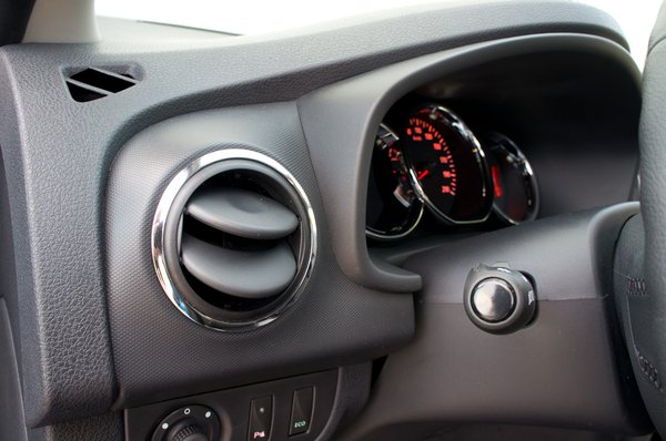 Amint érintőlegesen már említettem, a Logan/Sandero/Sandero SW triásznál mostantól szériában adják a kormányszervót, igaz, nem csapták mellé a kötelező kormánymagasság-állítást, hiszen azért továbbra is plusz pénzt kérnek, tengelyirányú állításról pedig szó sem lehet. Ennél a Polo tizenöt évvel ezelőtt előbb tartott. Valóban ügyesek a szellőzés kezelőszervei, már ugyanott vannak, mint a Renault-ké voltak szintén tizenöt évvel korábban, sőt, itt is felütötte a fejét a negyedszázada ismert, híres autóipari beszállítói gyomnövény, az eredetileg talán Iveco-buszrostélyként felbukkant levegőbefúvó. A Daciákban krómkerete van, ami rímel ugyan a szellőzőgombok díszítésére, ám lúdbőrös disszonanciát alkot a szellőzőrendszert keretező és az ajtóbehúzókat díszítő, kalapácslakk-metál-fényes-military-zöld elemekkel.