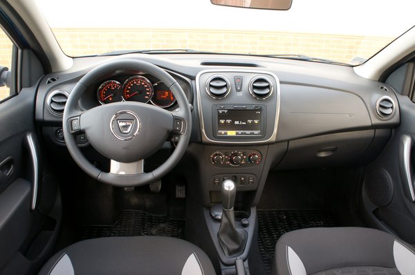 Egész tűrhető. Kinézetre például nemhogy vállalható, hanem egyenesen jó is, pláne ebben a metálkékben, a 40 mm-nyi (rosszabb utakra szánt kiviteleknél csak 26 mm az emelés, de ott erősebb futómű-elemeket használnak) magasítás dacára egészen ott van az úton. Persze, megvannak a hibák: a szervót csak ímmel-ámmal hangolták a futóműhöz, ezért a kormány érzetre nagyon nyúlós, nehezen akar kitérni középállásból, aztán meg felkönnyül. Nem szerettem, állandóan ide-oda kell korrigálni vele egyenesben. És az az emlegetett, brutális zajcsillapítás is csak a Logan-kategóriában szenzációs – 130-nál szélzaj azért már van bőven, a motor is hallatszik, a gördülési zaj sem csekély, de összességében sokkal-sokkal jobb, mint eddig bármelyik Dacia termék volt.