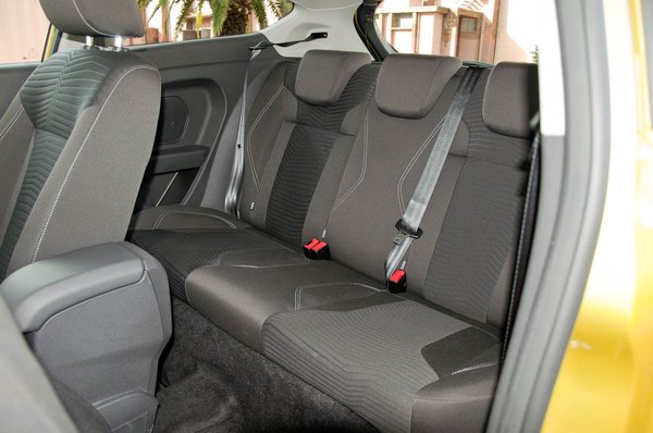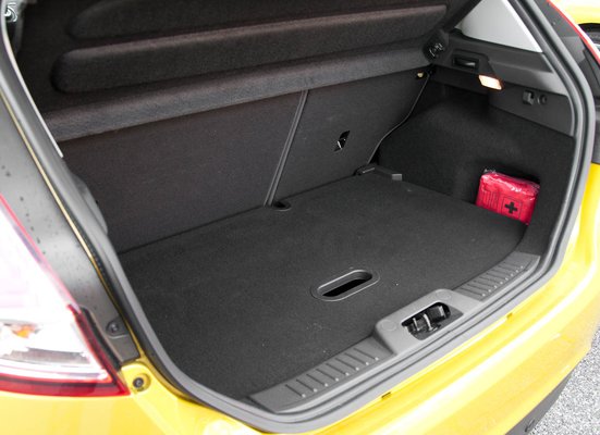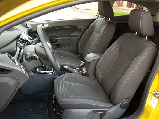 Nem vagyok egy hengerszám-fetisiszta, de a háromhengeres tényleg kisautóba való. Itt nem bánt a vézna hang, kisebb baj a nyomatéktalanság, amíg nem épül fel a töltőnyomás. De abban is biztos vagyok, hogy ez a minimum, háromnál kevesebb hengerrel 2012-ben már ne próbálkozzon senki, pláne nem egy 1100 kilós autóban, amiben hangvezérléses multimédiától visszagurulásgátlóig minden van. Ha belegondolunk, ez is elég bizarr, hogy ma már egy háromajtós törpébe, mint a Fiestába, hét légzsákot gyömöszölnek, radaros balesetmegelőző rendszert telepítenek, a kétszínű műszerfalhoz passzoló tónusú, fűthető üléseket szerelnek, és az egészet egy kis túlzással kézipoggyászba csomagolható blokkal mozgatják.