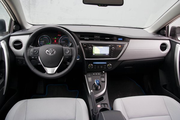 De az új Aurisban minden eddiginél jobb a zajcsillapítás. Annyival, hogy már tényleg padlógáz, autópályán komoly sebességtúllépés kell ahhoz, hogy zavaróvá váljon a benzinmotor hangja, pedig a hajtáslánc ugyanaz, mint a Prius 3-ban. Mivel az új Auris könnyű, ezért még erősnek is érződik, ráadásul annyit azért hangoltak a vezérlésén, hogy a motorhang nagyjából kövesse a kocsi sebességét. Az alapélmény sokkal autószerűbb.
