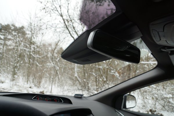 A kilátás nem nagy erőssége a magas fenekű ST-nek. Bár hátul akad egy-egy kis háromszög-ablak a C-oszlopokon, de leginkább fényt engednek be, a látóteret nem bővítik, elöl pedig a táblafelismerő- és egyéb rendszerek műanyag doboza nyúlik be mélyen a szélvédőbe, mint egy odaragasztott Larousse-enciklopédia. Kell is a táblafelismerő, hiszen sokszor éppen önnön érzékelői takarják ki a táblát. Így is csak arra jó, hogy tudjuk, mennyivel NEM megyünk. Mondtam már, hogy ez egy 250 lóerős, nulláról százra 6,5 másodperc alatt gyorsuló autó? Már kiforgatott egyesben lőttek a jogsinak.