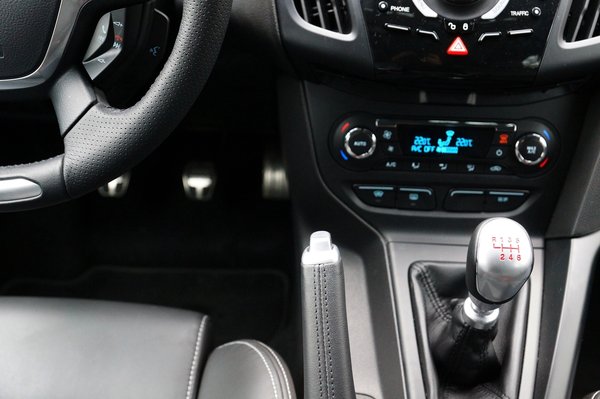 Ez azonban nem befolyásolja a helyes üléspozíció megtalálását és ezen a ponton meg kell dicsérni a Fordot, mert ritka jól eltalált a kormány-váltókar-távolság, ráadásul tisztességes, racsnis kéziféket kapott, az is kézre esik. A pedálok szépen, egy síkban, egymáshoz tökéletes távolságban vannak, a ballábfék-gázfröccs könnyedén kivitelezhető. A sofőr lábai szinte mindig a pedálokon vannak, így inkább csak az utast fogja zavarni az irdatlan széles középkonzol, mely miatt leginkább kicsit áltósan jobbra tartja majd a térdeit, egész egyszerűen szűk ott a hely, de nagyon.