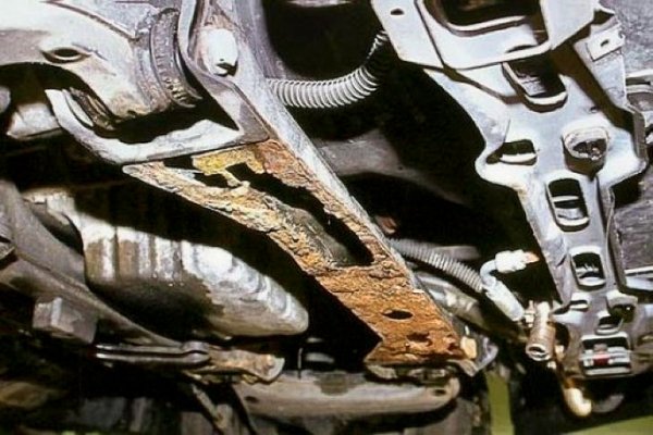 A kevésbé vicces tételek sorát a suttyomban, a földalatti mozgalmak mintájára szétrohadó kereszttartók, a régebbi Mercedeseknél elpusztíthatatlannak ismert, itt viszont filigrán és porlékony első motor- és futóműtartó bölcső gyarapítja. Utóbbinál a legnagyobb probléma, hogy épp a korróziós gócokat takarja az alsó trepni, ezért gyönyörű, ezüstmetál autójáról a büszke tulajdonos legtöbb esetben nem is tudja, hogy az rövidesen halk nyekkenéssel az orrán landol. A hossztartó oldaláról a tekercsrugók állványai ugyanis le tudnak törni (és ez megdöbbentően gyakran megesik, a nyugati sajtóban egy évtizede cikkeznek a jelenségről), ilyenkor pedig az autó eleje koppanásig a földre pottyan.