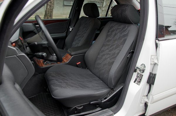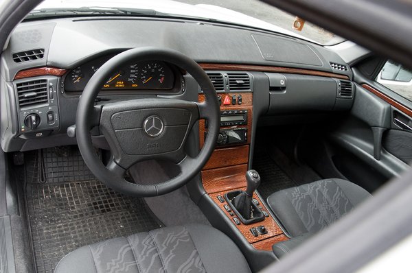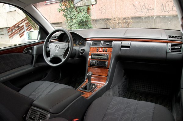Az ülések csak a nagyon kövér (vagy lendületből behuppanni szerető) tulajdonosok után ereszkednek meg, a támla szövete csak a szokásos Mercedes-helyen szakad ki, tudják, ahol a beülő sofőr háta súrolja a háttámla dudorát. Nem valami tartósak azonban az MB-Tex műbőr ülések (amik viszont a 115-ösökben és 123-asokban voltak elpusztíthatatlanok), repedeznek, mállanak az UV-tól. A szőnyegek viszont sokáig bírják, a fabetétek, az utastéri díszek hihetetlenül tartósak, sokkal inkább azok, mint a 124-eséi voltak. Az elődmodell hibái között sokan emlegették az idővel megszoruló, nyekergő, kattogó ajtóhatárolókat – azonban a 210-eséi szinte sosem mennek tönkre.