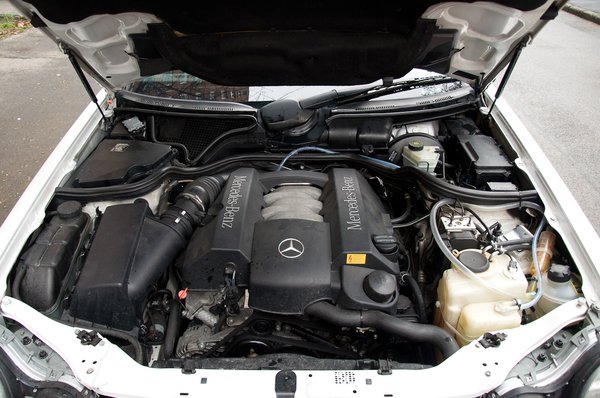 1999-es, még épp az első szériából való példány, az akkor meglehetősen új, egy kiegyensúlyozó-tengelyes, 90 fokos hengerszögű, V6-os, 18 szelepes, 170 lóerős benzinessel. Ez volt a Mercedes első V6-os motorszériája, és elég jól sikerült. A 240-es híresen takarékos motor, ha a kábelkorbács, a motorvezérlő, a légtömegmérő rendben van, a világból kimegy.